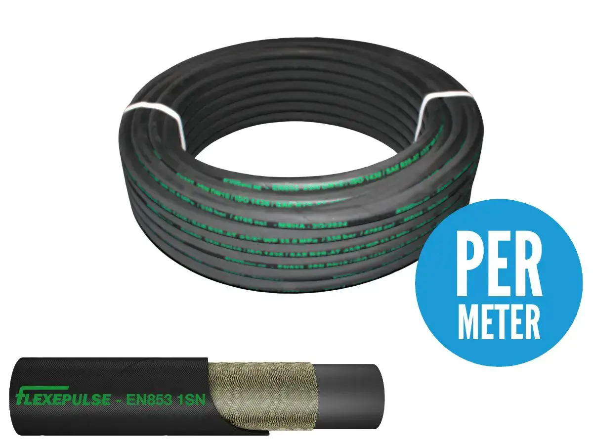 Flexpulse 1/4" internal diameter 1 wire Hydraulic Hose with MSHA approved flame resistant outer cover. Abrasion, ozone & weather resistant synthetic rubber.